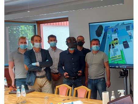 Vergangene Woche fand dann zu diesem Projekt des Smart Mini Factory Labors für Industrie 4.0 der unibz das Abschlusstreffen am Unternehmenssitz in Brixen statt. Mittels VR-Brille konnten die Mitarbeiter des Unternehmens direkt in die digitale Fabrikplanung eintauchen und sich ein Bild der neuen Halle machen. „Die Zusammenarbeit mit der Freien Universität Bozen hat es uns ermöglicht, neueste digitale Planungswerkzeuge einsetzen zu können und mit dem gesamten Planungsteam und allen Mitarbeitern einen virtuellen Rundgang durch unsere zukünftigen Fertigungshallen durchzuführen. Neben einer effizienteren Planungsphase konnten wertvolle Vorschläge seitens der Mitarbeiter gewonnen werden, die ansonsten erst viel später in der Umsetzungsphase erkannt worden wären“, so Andreas Gallmetzer von der Progress Group.