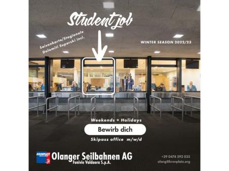 für die kommendeWintersaison bieten wir einen Studentenjob an. Hauptsächlich an Wochenenden undFeiertagen und nach Absprache auch an Wochentagen (sofern Verfügbarkeitbesteht).