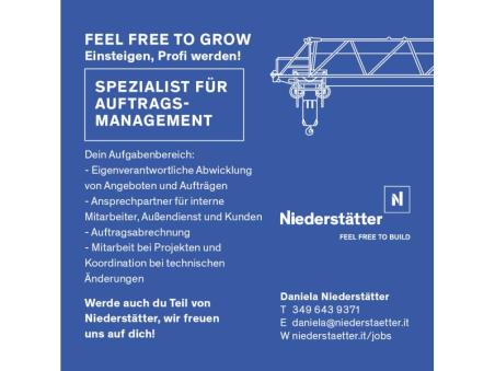 Niederstätter sucht einen/eine Spezialist/in für Auftragsmanagement