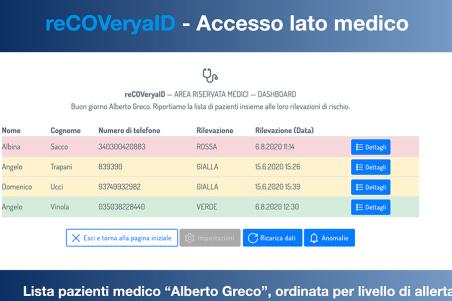 Die Webanwendung sieht eine Registrierung von positiv auf Covid-19 getesteten Bürger*innen in einer Datenbank der lokalen Gesundheitsbehörde vor. Eine Mobilanwendung von reCOVeryaID befindet sich in der Implementierungsphase. Positiv getestete Personen könnten somit zu Hause bleiben und dem Hausarzt über reCOVeryaID ihre Messdaten senden, sodass dieser sie kontinuierlich überwachen kann. Das System weist jeder Messung aufgrund eines speziellen Regelsatzes in der Datenbank eine Alarmstufe zu, von grün über orange bis rot. Rot empfiehlt eine sofortige Einweisung des Patienten ins Krankenhaus. Eine weitere Funktion misst den Trend in den aufgezeichneten Werten und schlägt bei einer besorgniserregenden Entwicklung Alarm. Weiters führt das System periodisch detailliertere statistische Analysen der Messungen durch. Diese werden in einer Datenbank gespeichert, in der die Identität aller Patient*innen, das Messintervall und das Ergebnis festgehalten werden. „So können weitere Warnmeldungen übermittelt werden, die sich nicht auf die aktuelle Situation, sondern auf ein größeres Zeitintervall beziehen", so Daniela D'Auria. Teil der Notfallkommunikationen wird es sein, dass die Anwendung automatisch einen Krankenwagen zum Wohnort des Patienten ruft, sollte der Arzt den Bedarf bestätigen.