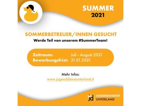 Weitere Informationen: https://www.jugenddienstunterland.it/deutsch/5-angebote/sommer-online-bewerbung/