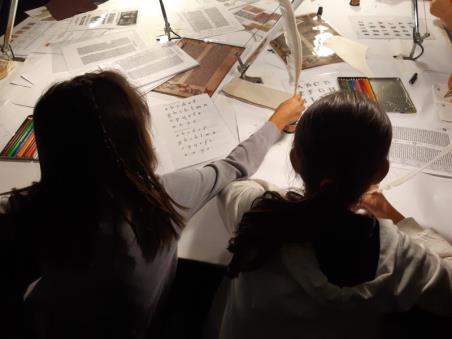 Tierhaut statt Papier, Federn statt Kugelschreiber, Pflanzenfarbe als Tinte, Druckerei mit Bleilettern, Schulbänke und originale Schulwandbilder aus Großmutters Zeiten ... Kinder von 5 bis 10 Jahren können die hohe Kunst des Schreibens aus längst vergangenen Zeiten erleben und wie die Mönche im Mittelalter ihre Geschicklichkeit im Umgang mit der Gänsefeder ausprobieren. In der Herstellung eigener Druckwerke mit handgesetzten Buchstaben einer Druckerei, führt diese Zeitreise in authentischer Atmosphäre bis zum Buchdruck und schließlich in die jüngere Südtiroler Schulgeschichte.